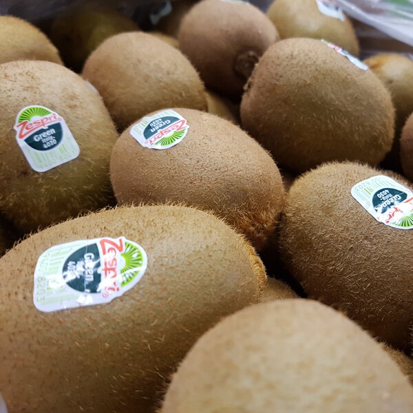 Kiwis Zespri reconocidos por su dulzor y consistencia. Cada caja contiene aproximadamente 10 kg.